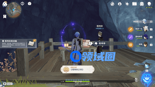 对话结束后,会提示获得成就《塔列辛之书》和2个道具「塔列辛的诗稿」。
