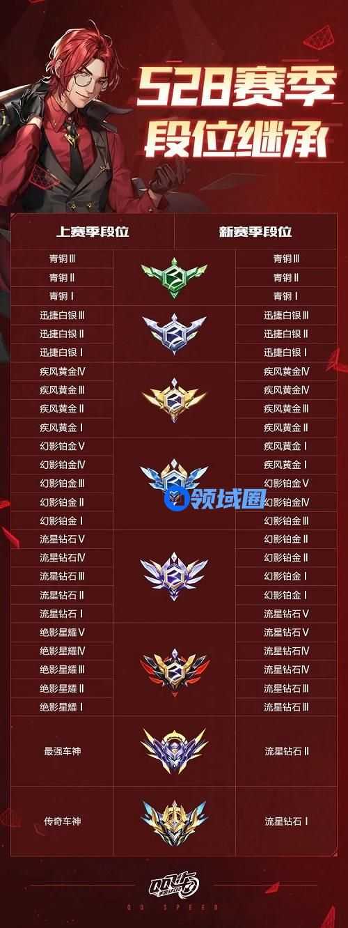 1、S28赛季段位继承表如上图所示,新赛季的开启也意味着,车手们在上个赛季的段位将会按照一定规律进行继承。