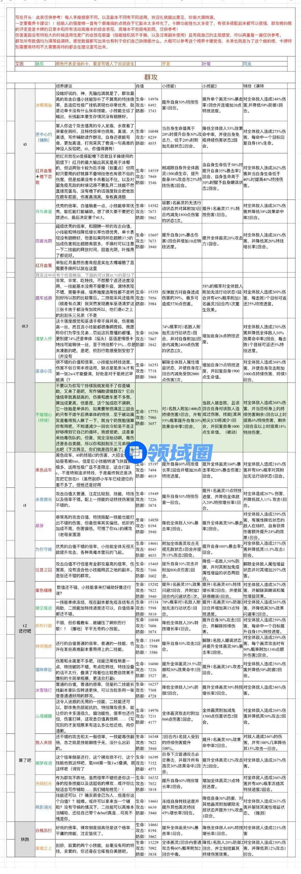 4、群攻所有数值均为满等级满特。感觉数据都写出来也有利于你们自己抉择练什么。大概可以参考这个榜养卡喂觉悟,本来也就是为了这个做的榜,卡牌特别需要高特和不太需要高特的都会在建议里写出来。