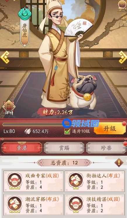 2、如何查看一名门客的实力如何?只需要看看相关的资质即可,资质越高的门客,实力也会越高,同时每位门客都有属于自己的专属珍兽,如果获取了专属的珍兽,在培养以后也可以提高门客的实力。