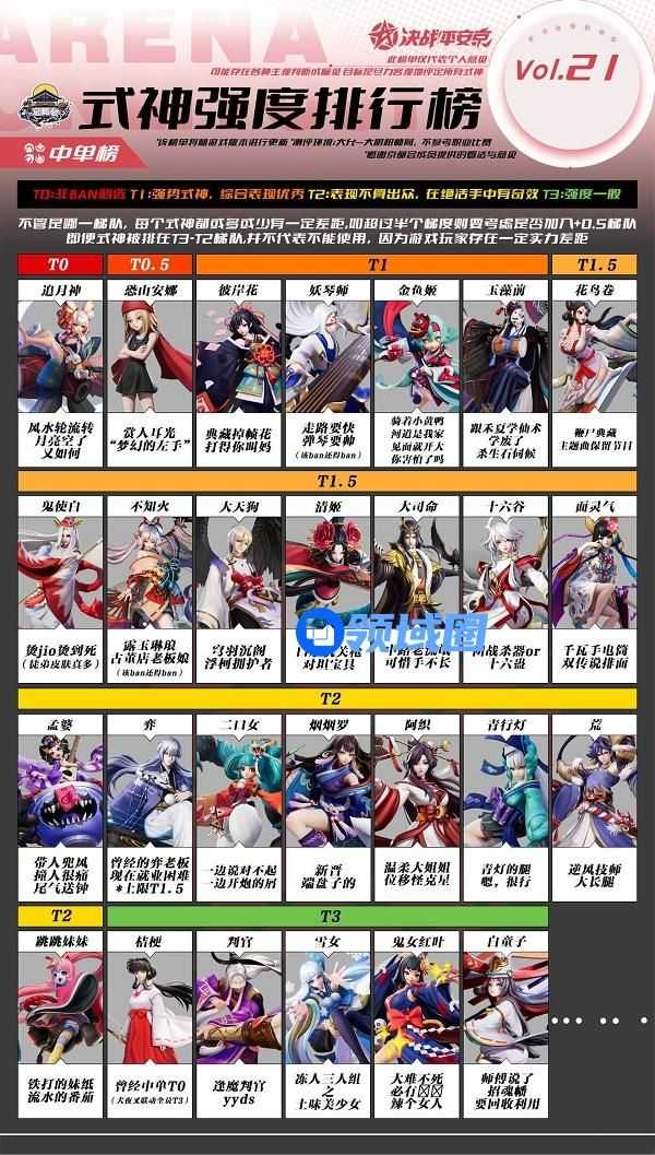 1、TO:非BAN必选,TI:强势式神,综吕表现优秀,T2:表现不算出欣,在绝活手中有奇效,T3:强度一般。