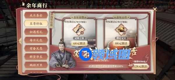 1、至尊特权(128元):找到志趣相投的伙伴一起畅游江湖是至关重要的,我们可以花费68元激活余年荣华特权,每日可领取10把灵犀之钥,召唤你的专属伙伴!同时,还可花费88元激活余年富贵特权,每日可领取800绑定元宝,绑定元宝可以用来购买铜钱、砂铁、星魄石等以提升修为战力,还可购买红玫瑰、四叶草与好友提升关系亲密度。一次购买终身享用,对于长期来玩游戏的中氪玩家双特权同时激活更有折扣,跟着会过日子的王启年混准没错!