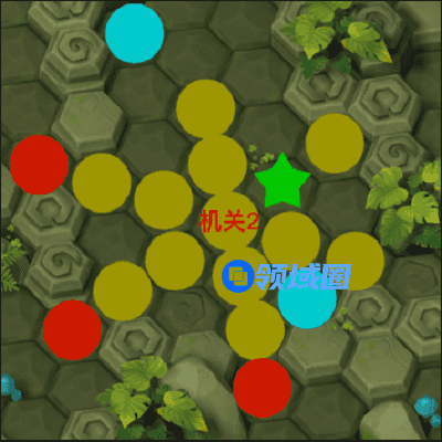 3、当你进入机关1机关2通道后,你会遇到花瓣石阵,根据黄线的路径可以破解花瓣石阵