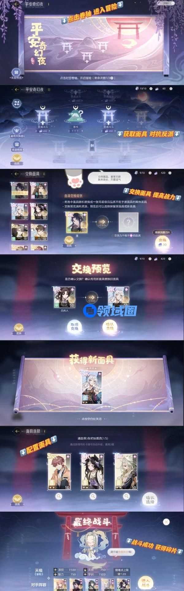 ①重新随机获取面具,使用新面具对抗反派。(“面具清空并需重新获得”仅为“平安奇幻夜”活动中的设定,并不影响在活动外的面具。)