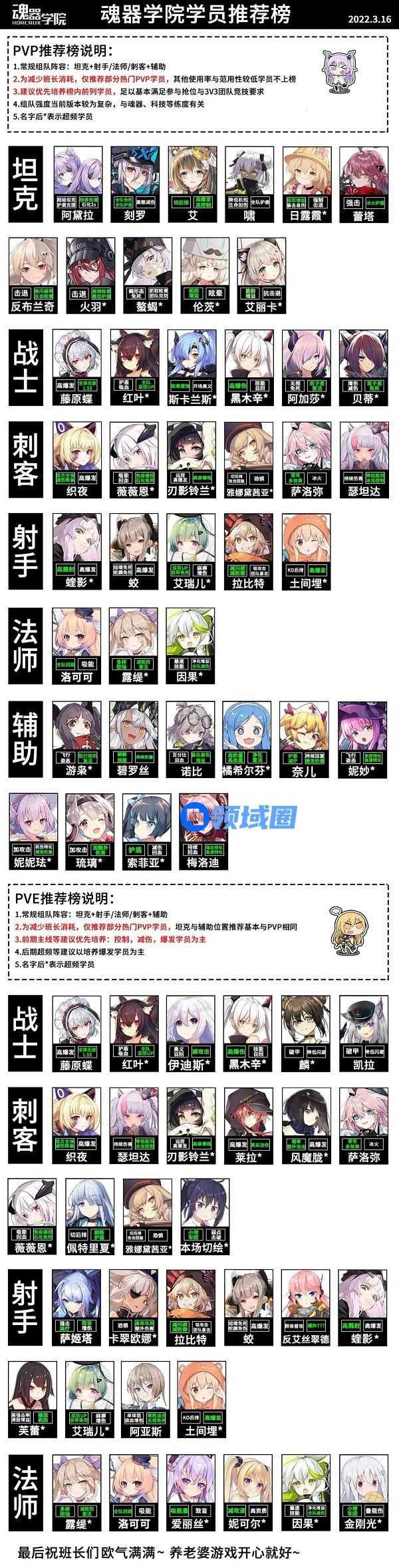 2、为减少班长消耗,仅推荐部分热门PVP学员,其他使用率与范用性较低学员不上榜