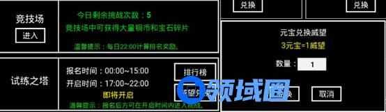 完成前期准备,开局打25级副本,早日到30级,将竞技场打上去,然后开服第二天在下午3点之前尽量等级提升到35级,这样可以报名试练塔,获取威望,当然也可以直接元宝兑换威望值