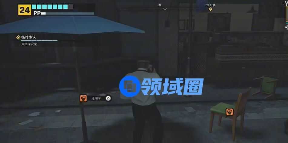 1、首先我们需要来到咖啡馆门口,在这里装备遮阳伞。