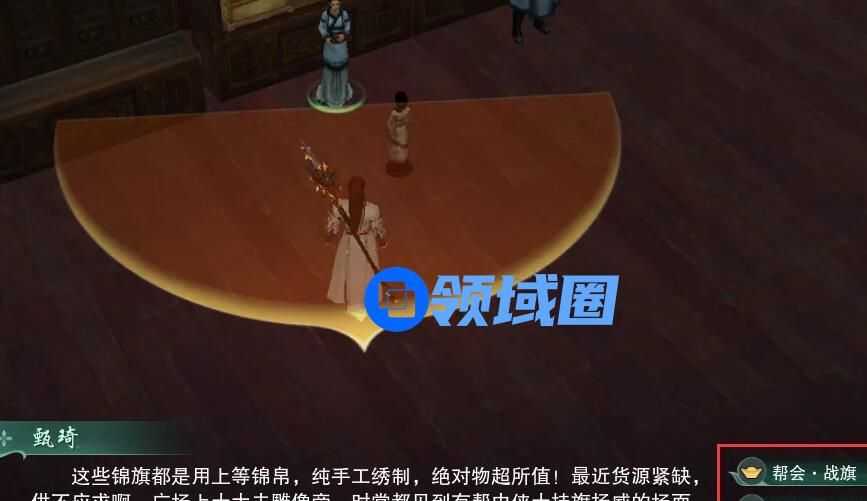3、在里面我们可以找到甄琦进行对话,选择打开战旗商店。