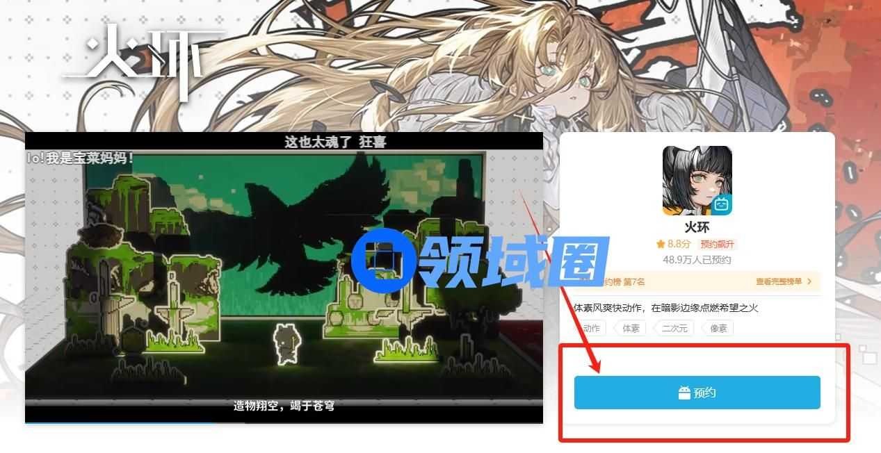 2、然后跳转到B站火环页面,点击“预约”即可。