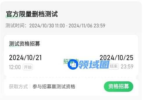 测试时间:2024年10月30日11:00 - 2024年11月6日23:59
