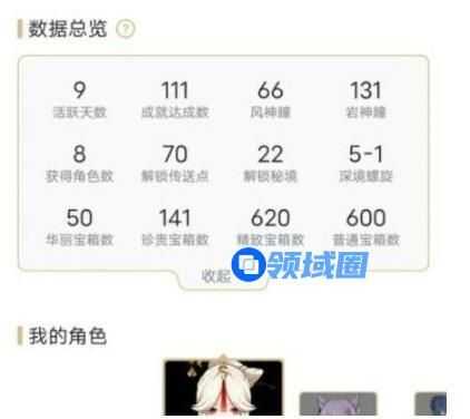 4、键入角色UID及级别后,点击接收验证码,前去游戏内邮箱查询,验证码核实成功后,就能够看到角色的所有数据了,包含活跃日数、造就进行总数、风神瞳及岩神瞳的收集状况、获得的角色总数、解锁的传送点、解锁的密境、深境螺旋层数、启动的宝箱总数(绮丽宝箱、宝贵宝箱、精美宝箱、一般宝箱都有表明)。