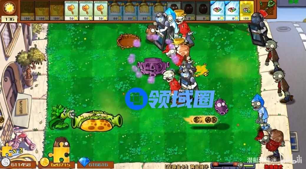 4、黄金锤子的关卡里面可选择的植物比较少,主要是依靠黄金锤子的卡片合成植物。