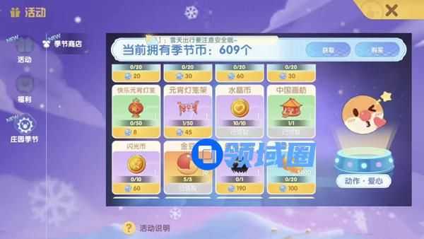 3、我们只需要花费几个季节币就可以购买了,可以多做任务去获得币。