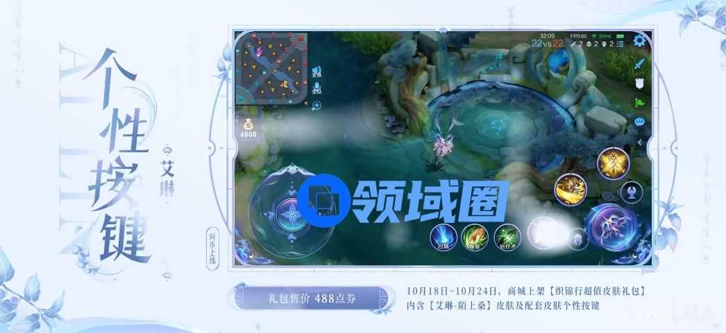 2、10月25日00:00-12月25日,艾琳-陌上桑上架商城限时售卖(首周710点券);此外,配套皮肤的个性按键也将于10月25日00:00单独上架商城(首周150点券)