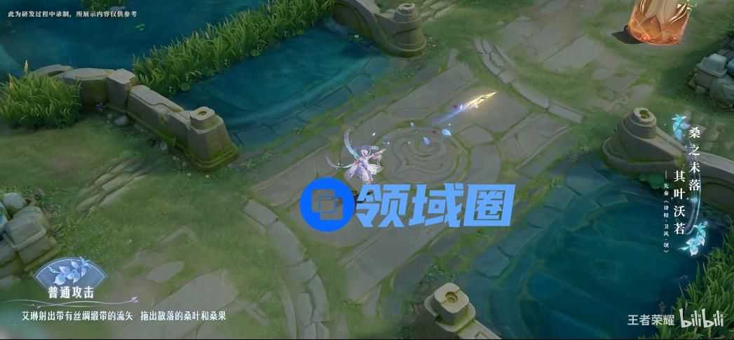 艾琳获得强化普攻后,依稀可见丝绸动态环绕,裹挟凝聚着桑树之力的能量球随流矢释出。
