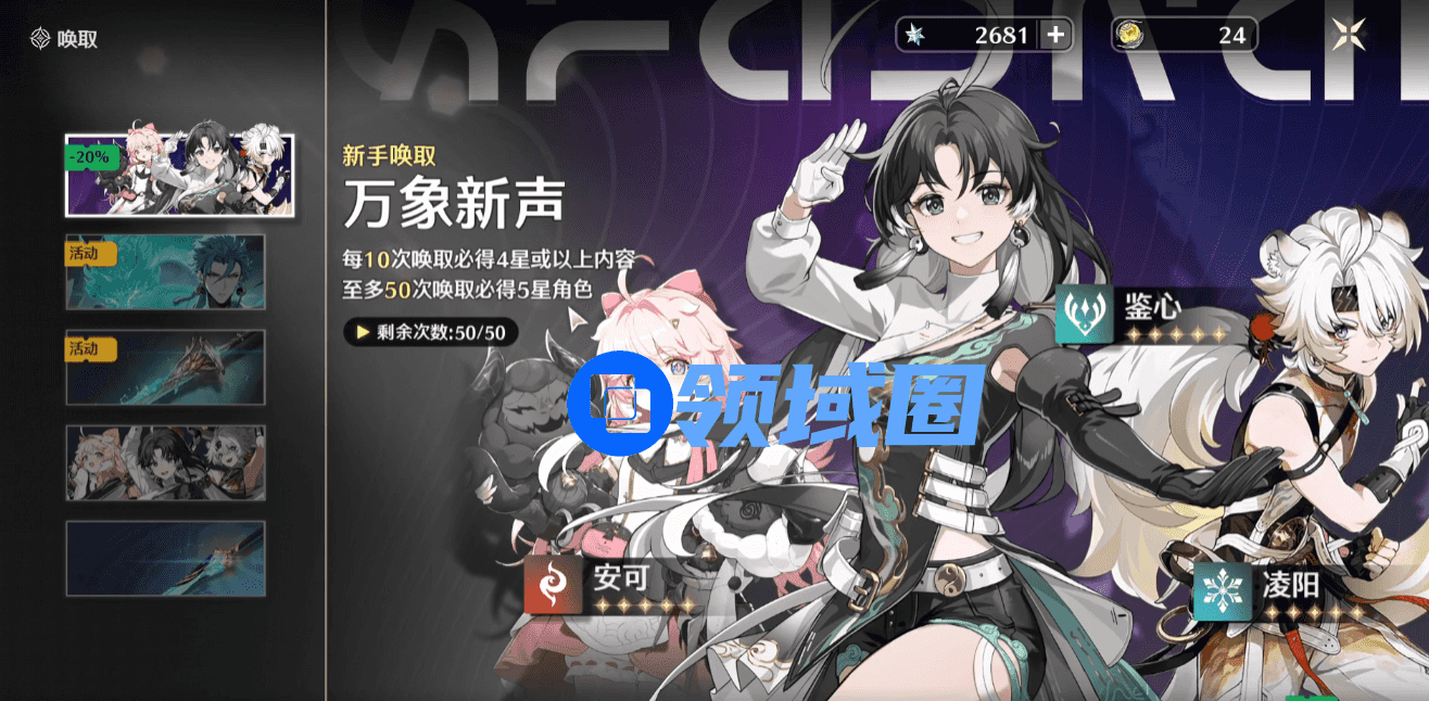 1.「新手自选唤取」卡池开启条件:漂泊者在「万象新声」新手唤取抽取到五星角色后,该卡池便会开启。