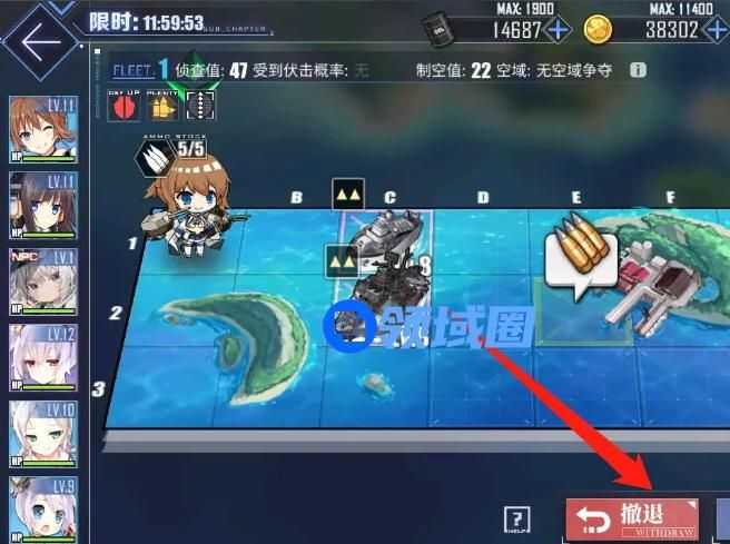 4、最后如下图所示,点击右下角撤退,就可以退出当前舰队了。