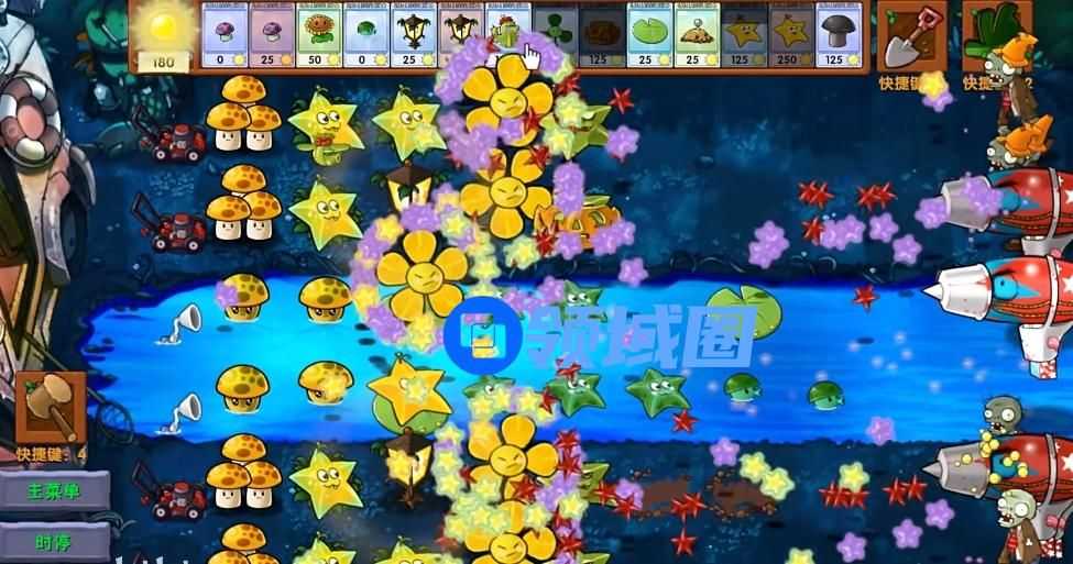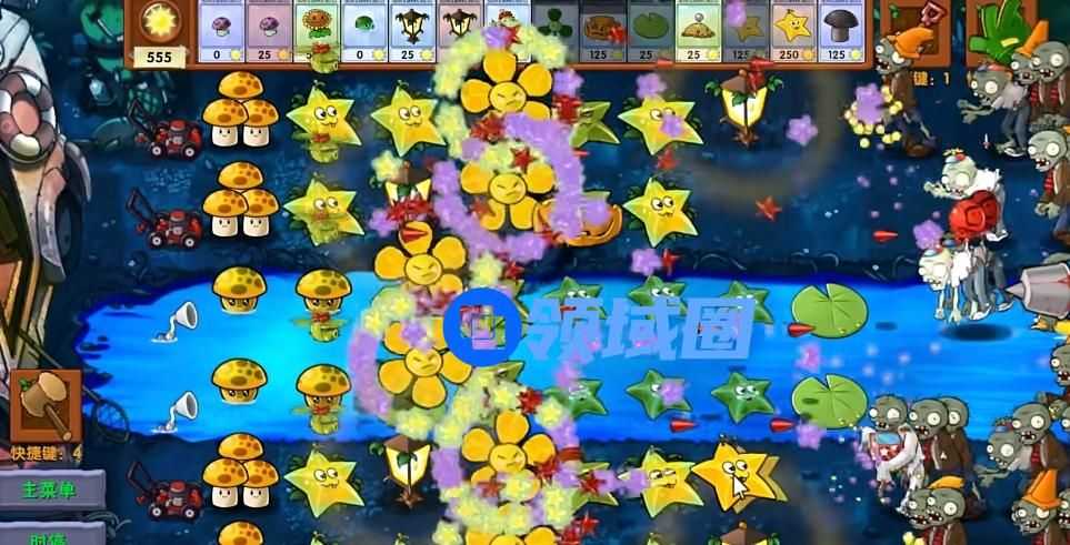 4、杨桃五叶草将附近吸引过来的星星在周边旋转加速,无论是紫色星星还是黄色星星都可以吸引过来加速,加速一段时间后飞速射手攻击僵尸,能够造成很大的杀伤力。