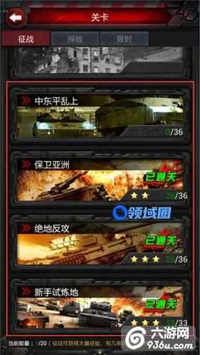 每个副本中有多个小关卡,挑战难度逐渐提升,关卡主要防守坦克是展示在地图界面,指挥官们不要小看防守展示哦,坦克属性相生相克,合理布置出战坦克品种可能逆转战局,早期作战难度较低,可以暂时忽视,现在我们开始第一场战斗吧