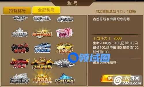 在《猛龙过江》游戏中玩家可通过各种活动与成就获得种类繁多的称号,当获得对应称号的“称号卡”后可前往称号界面激活对应称号,在激活后即可获得对应称号所提供的大量属性,从而提高战斗力,由于称号的属性可叠加,所以收集称号也是快速提升战斗力的重要途径。