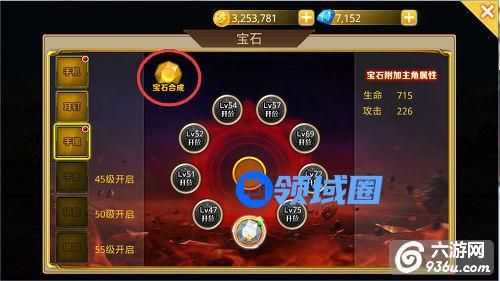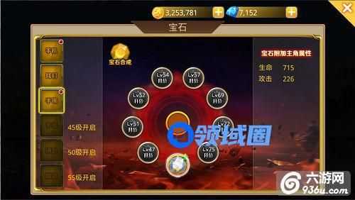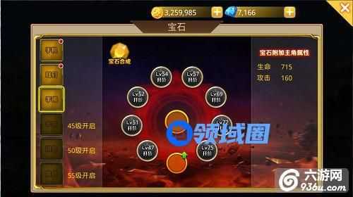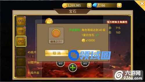 当人物等级满足的时候,宝石孔位置上面会出现一个“+”号,提示玩家可以开启了,消耗一定的港币和宝石可以开启宝石孔
