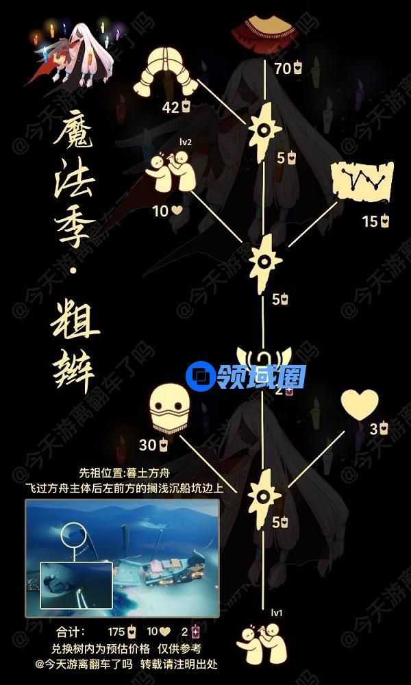 2、4.21复刻先祖总共需要175根白蜡烛、10颗爱心、2根红蜡烛就能兑换出金色挂耳面纱、双尾粗辫发型、金紫荒原斗篷、打闹动作、乐谱等新物品了。