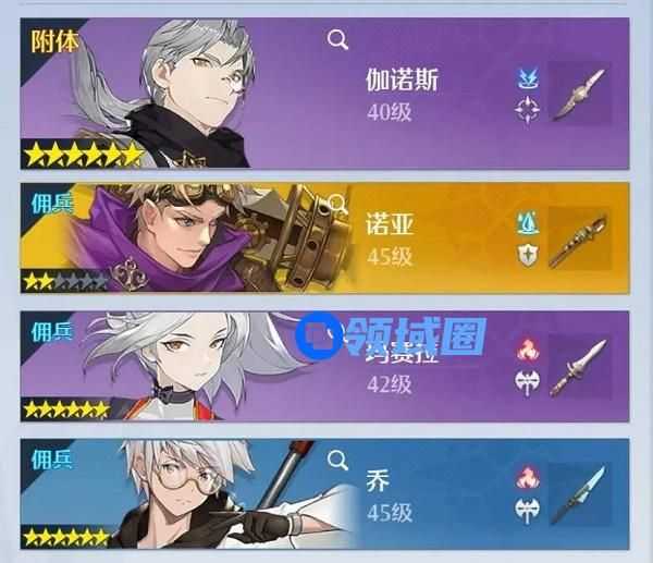 其中【伽诺斯】26000+幻灵评分,2200幻灵攻击力;【诺亚】18000+幻灵评分,1800+幻灵攻击力,【乔】和【玛赛拉】都是25000+幻灵评分,1700+幻灵攻击力。