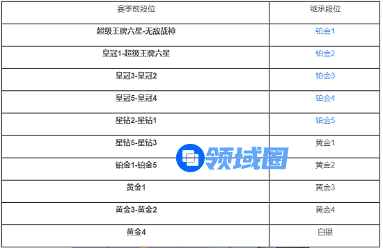 1、如图所示,星钻3以上的段位都会掉到铂金段位,而星钻3以下基本上都会掉到黄金段位,大家按照自己的在SS17赛季段位参照上表就能看出自己在SS18赛季的段位继承情况。