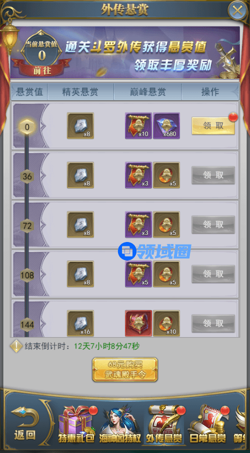 开启武魂殿悬赏活动