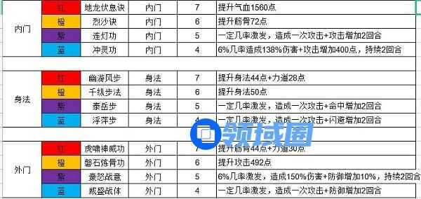 4.玩家们可以对照上表来选择侠客进行切磋。