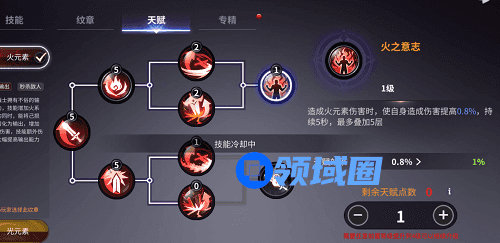 2、先看火元素,结合重剑的定位来看,如果是单刷任务,那火元素就非常适合重剑。单刷任务没有队友的伤害补给,而重剑的伤害爆发并非很高,这时候火元素就能弥补一些伤害的不足。主天赋攻击强化能增加可观的攻击属性,而究竟是选择火之意志还是火之打击的终极天赋呢,其实我个人认为火之意志更好一些。首先火之意志只要造成火元素伤害就能提高自身伤害,比火之打击的暴击触发更容易实现,其次是火之意志的效果是可叠加的。再者火之打击提高的是百分比的攻击力,但重剑并非是爆发输出型的职业,因此火之意志可能是更适合他的选择。