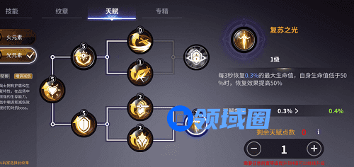 4、风元素是一个辅助型的天赋,能加强控制和一定的技能冷却。作为重剑来说,他的控制技能并不多,只有一个眩晕,或许从这里看性价比并不高。但风元素作为一个可选元素,是因为风之壁垒的存在。这个天赋点亮后,能减低自身所受到的伤害,而且还是可累加的。在团战中,更能站得住脚,才更有获胜的希望不是吗!所以如果选择风元素的话,比较推荐点亮上行符文树中的风之壁垒。