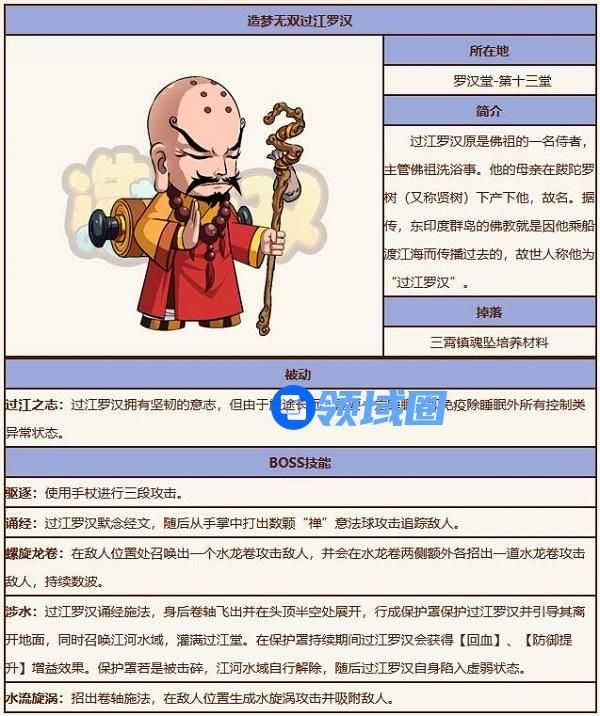 过江罗汉是造梦无双近期推出的新关卡中的boss,很多玩家都想要知道造梦无双过江罗汉技能有哪些,游戏宝小编为大家带来造梦无双过江罗汉技能表。