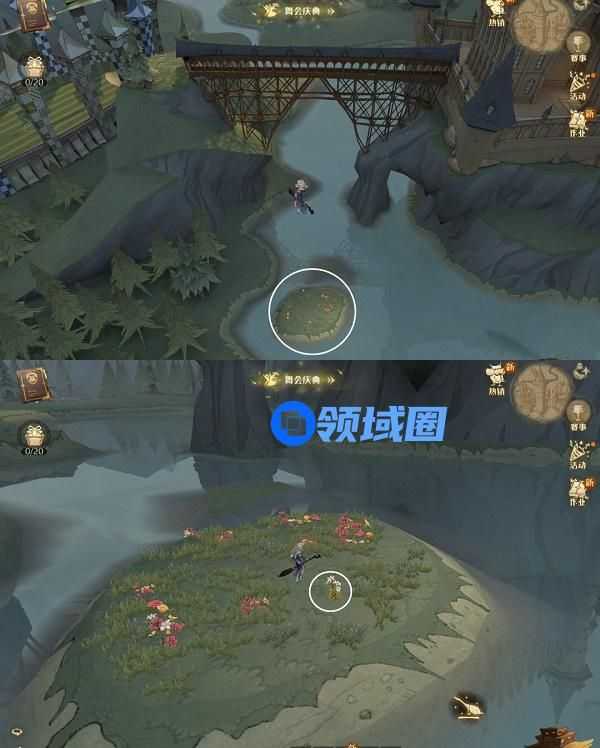 魁地奇球场旁,廊桥左侧小岛→点击草坪上的白色百合花→完成浇水,获得50奶油雏菊