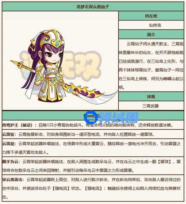 云霄仙子是造梦无双近期推出的新关卡中的boss,很多玩家都想要知道造梦无双云霄仙子技能有哪些,游戏宝小编为大家带来造梦无双云霄仙子技能表。
