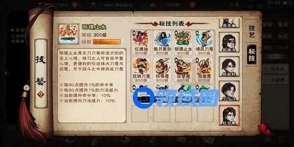 1.明镜止水 完成镇派任务心魔试炼后自动获得此秘技