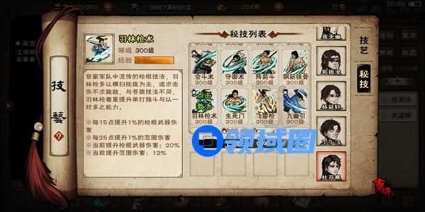 4.羽林枪术 学习有镇派枪法,镇派枪法需一定等级 劫信使门派任务概率出后续任务 ,然后概率给羽林残页(满300级需要十个)
