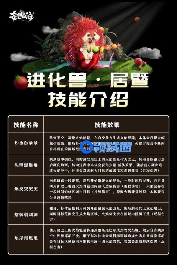1.虽然外表软萌,可是旅者们可不能小瞧居暨呢!居暨是使用火的进化兽,除了上限可达三万年(甲级),并且与其他进化兽一样血脉转化5%之外,它也是身怀绝技,可以说是玩火玩得炉火纯青!
