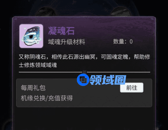 2、凝魂石又称阴魂石,相传此石源出幽冥,可固魂定魄,帮助修士修炼领域域魂。