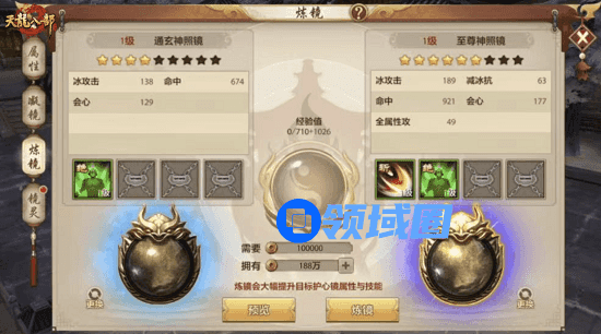 为了进一步提升护心镜的属性,少侠可从炼镜界面中,将自己无用的护心镜转化为当前使用护心镜的经验值。通过提升护心镜等级从而提高属性。