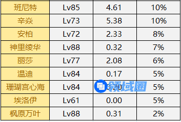 埃洛伊作为免费赠送的五星角色,闲置率居然低至5%,这个数据看起来很奇怪,但是看一下埃洛伊全角色的平均等级是全角色最低就明白了,毕竟能把埃洛伊拉到71级以上的基本都是真爱党,真爱党自然也会选择用她来打深渊,其他的一些冷门角色,比如辛焱、安柏、丽莎也是同理。