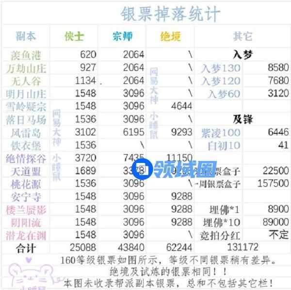 2.玩家们可以按照上图中的银票产出结合自己的实际情况选择最适合自己的银票副本。