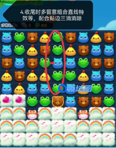 4、收尾时多以贴边三消消除为主,留意组合直线、爆炸特效等辅助消除云团,收集过关所需宝石。