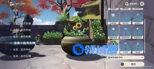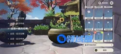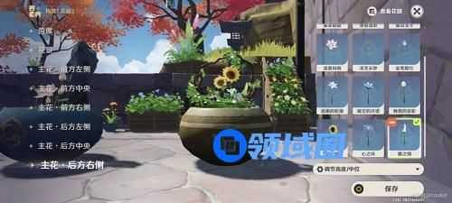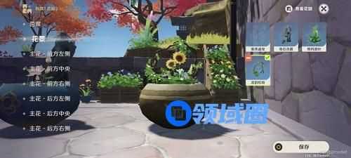 上述的花材选取步骤都选完后,点保存按钮即可完成盆景摆放任务。