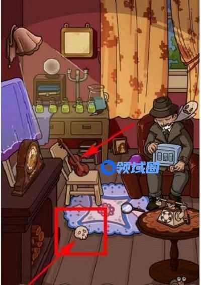 1、点击小提琴,把猫咪赶走,就得到头骨了。