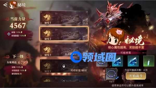 3、则温馨提示,随着力量值或智力值的提升,获得更高品质掉落武器的概率也会随之增加,大家在挑战副本之前一定要注意好自己的数值哦