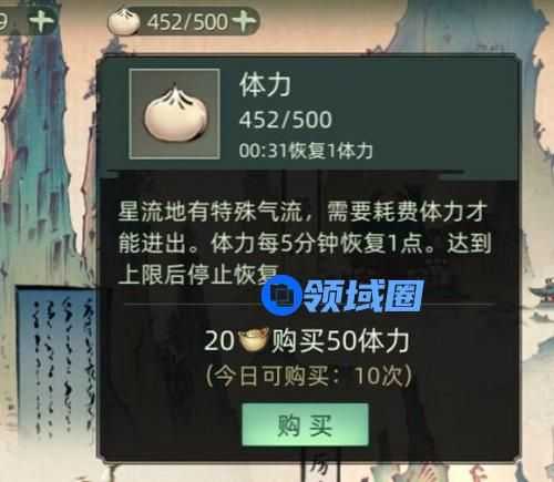 (2)元宝购买,价格随购买次数升高,因此建议购买20元宝的价格即可。20元宝=50体力。
