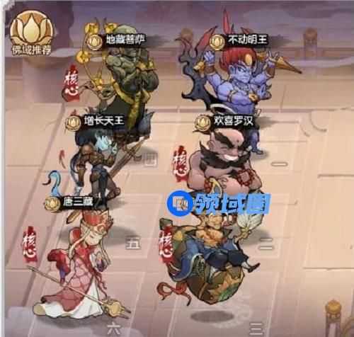 1、阵容推荐:不动明王、欢喜罗汉、济公、地藏菩萨、增长天王、唐三藏