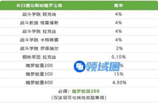 1.春日樱花限时魄罗宝箱奖励抽取概率公示如下: