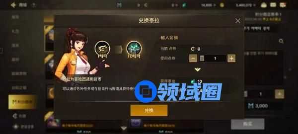 最普遍的一种就是使用点券兑换,点券兑换泰拉的话是1:10的比例。
